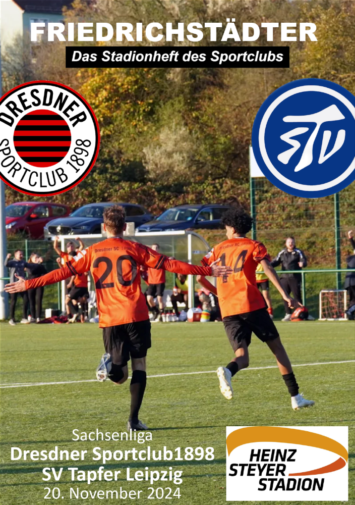 | 00:33, 14. Dez. 2024 | 2024-12-07-Onlinebanner-Spielankuendigung.png (Datei) | 1,19 MB | DSC-Archiv-Administrator | Onlinebanner Spielankündigung zum Auswärtsspiel beim SC Borea Dresden am 7. Dezember 2024 | 1 | |