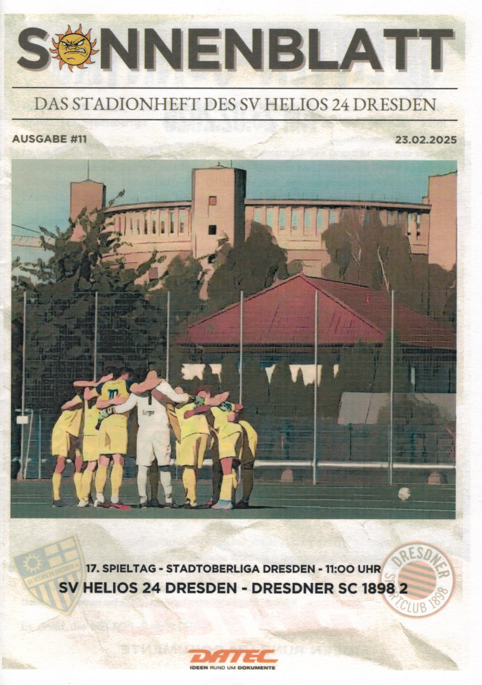| 22:36, 10. Sep. 2025 | 2025-09-08-Spielankuendigungsplakat.png (Datei) | 732 KB | DSC-Archiv-Administrator | Offizielles Spielankündigungsplakat zum Heimspiel gegen die SG Motor Wilsdruff am 8. September 2025 | 1 | |