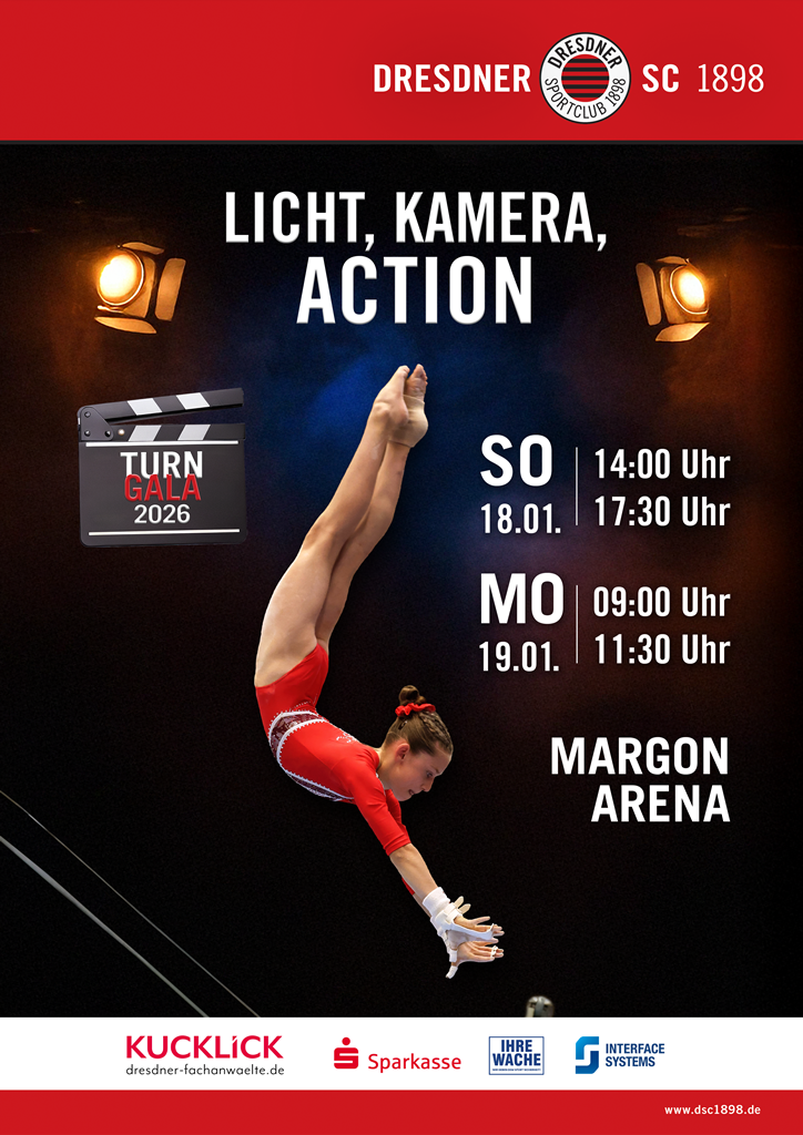 Ankündigungsplakat zur 26. DSC-Turngala 2026 (Grafik: Abteilung Turnen und Sportakrobatik)