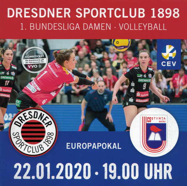 Titelseite des Programms der Abteilung Volleyball des Dresdner SC vom 22. Januar 2020 (Quelle: Reproduktion aus Originalvorlage)