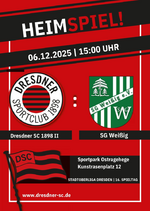 | 6 | Sonntag | 21.09.2025 | 11:00 Uhr | FSG Wacker 90 Dresden-Leuben – DSC II | 6:2 (2:1) | 64 |