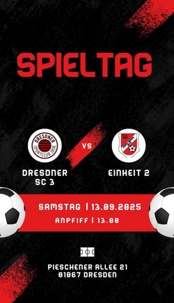 | 4 | Samstag | 13.09.2025 | 13:00 Uhr | DSC III – SG Einheit Dresden-Mitte II | 1:1 (1:1) | 27 |
