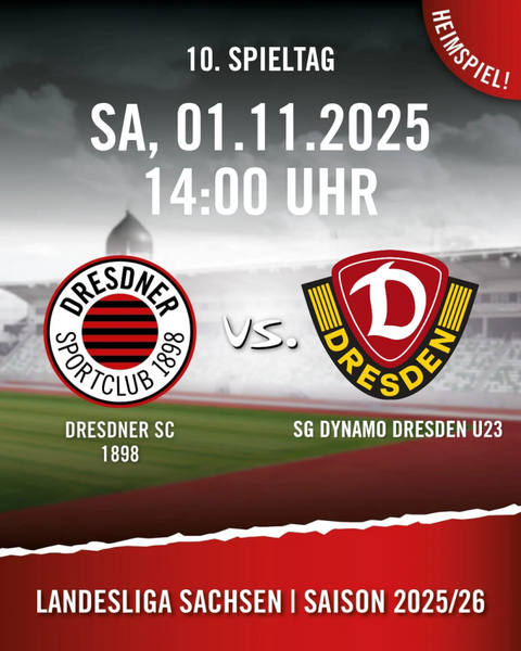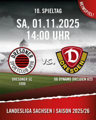 Onlinebanner Spielankündigung zum Heimspiel gegen die SG Dynamo Dresden II am 1. November 2025