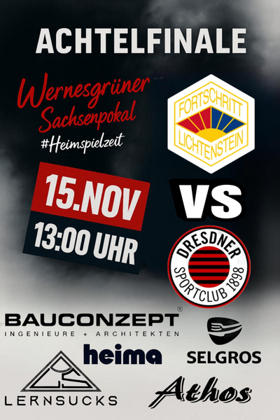 Onlinebanner Spielankündigung zum Auswärtsspiel bei der SSV Fortschritt Lichtenstein am 15. November 2025