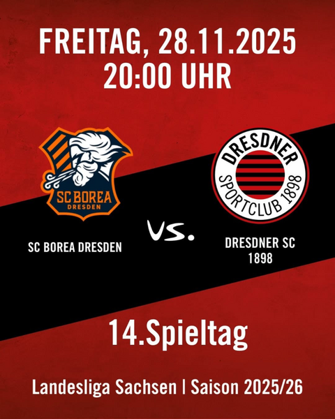 Onlinebanner Spielankündigung zum Auswärtsspiel beim SC Borea Dresden am 28. November 2025
