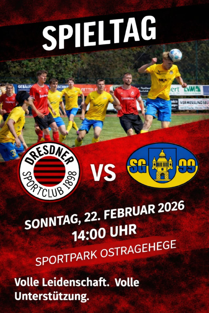Onlinebanner Spielankündigung zum Heimspiel gegen die SG Taucha 99 am 22. Februar 2026