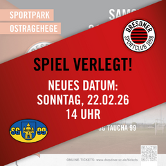 Onlinebanner Spielankündigung zum Heimspiel gegen die SG Taucha 99 am 22. Februar 2026