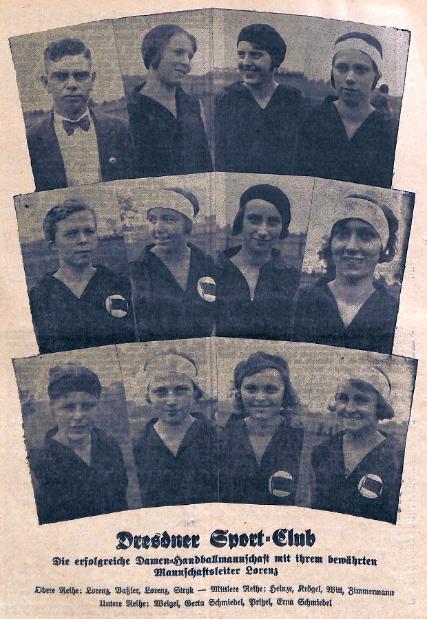 Teamfoto 1931/1932 der 1. Frauenhandballmannschaft des Dresdner SC (Quelle: Reproduktion aus historischer Originalvorlage)