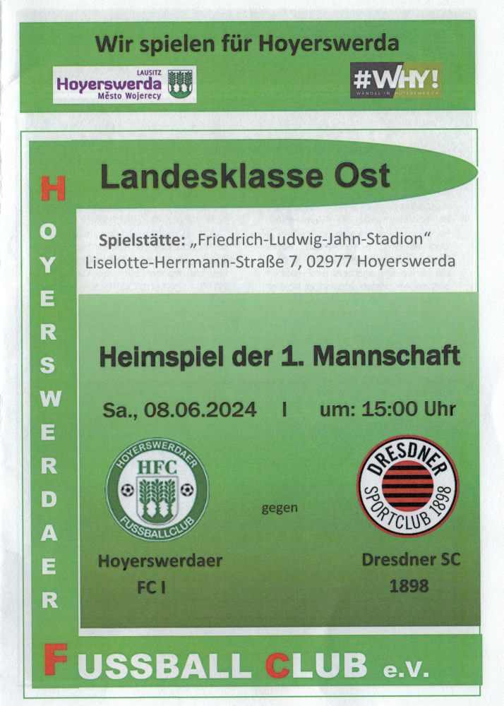 Titelblatt des Auswärts-Programms vom 8. Juni 2024 (Quelle: Reproduktion aus Originalvorlage)