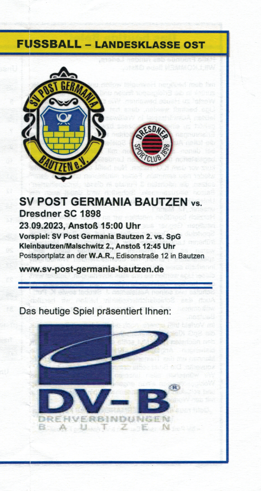 Titelblatt des Auswärts-Programms vom 23. September 2023 (Quelle: Reproduktion aus Originalvorlage)