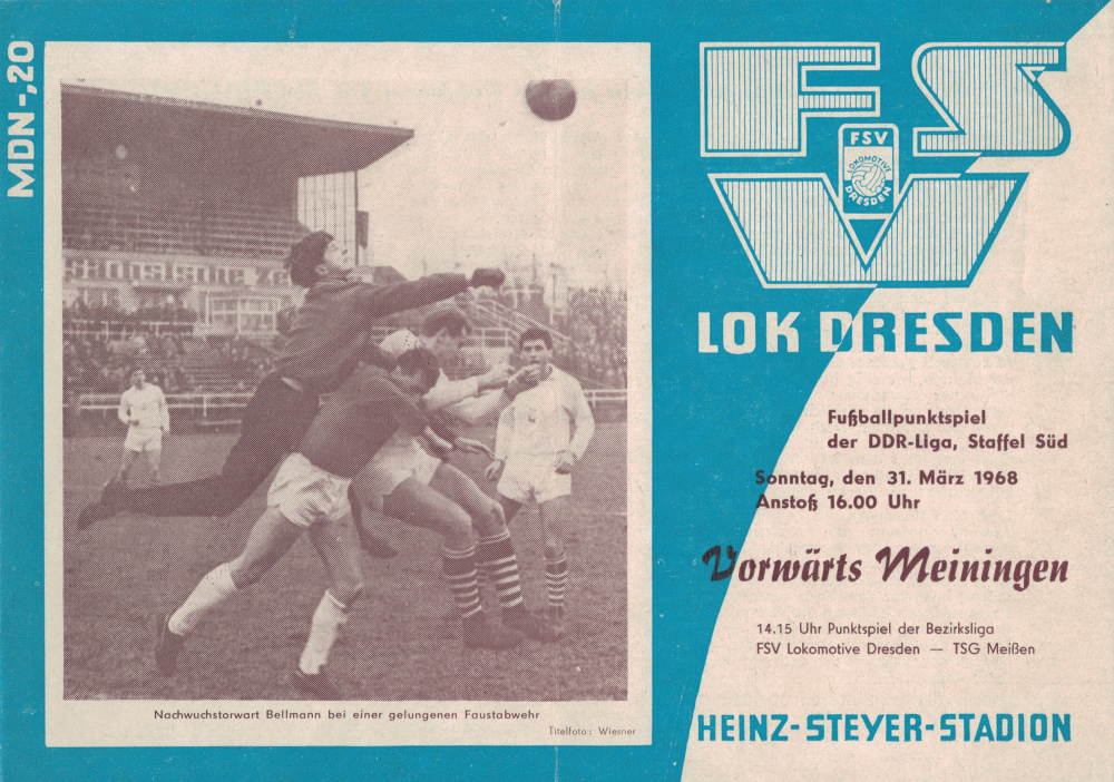 Titelblatt des Programms der FSV Lok Dresden vom 31. März 1968 (Quelle: Reproduktion aus Originalvorlage)