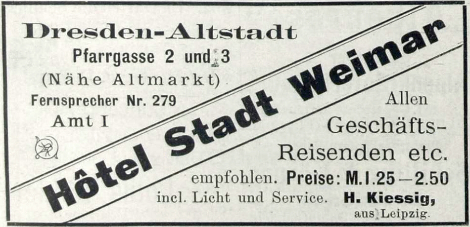 Werbeanzeige aus dem Jahr 1893 für das Hotel Stadt Weimar in Dresden (Quelle: Reproduktion aus historischem Adressbuch)