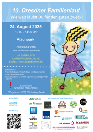 Als traditionsreicher, familienfreundlicher und integrativer Großsportverein freuen wir uns, den 13. Familienlauf, organisiert von UNICEF Dresden, am 24. August im Dresdner Alaunpark unterstützen zu dürfen.
